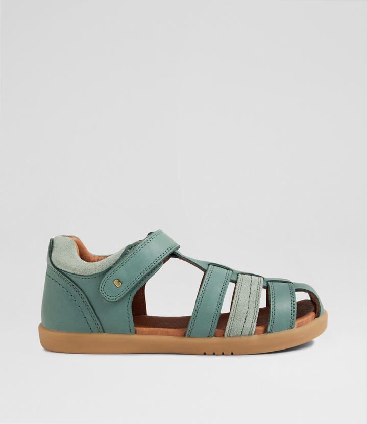 These classic summer sandals have a closed toe for added protection, while open sides provide airflow and breathability.The ROAM sandals boast an ankle strap fastening for a secure, adjustable fit, padded collar for comfort and our signature brass icon rivets add sophistication. Suitable for active kids, this Bobux style fits average width feet, and is true to size.