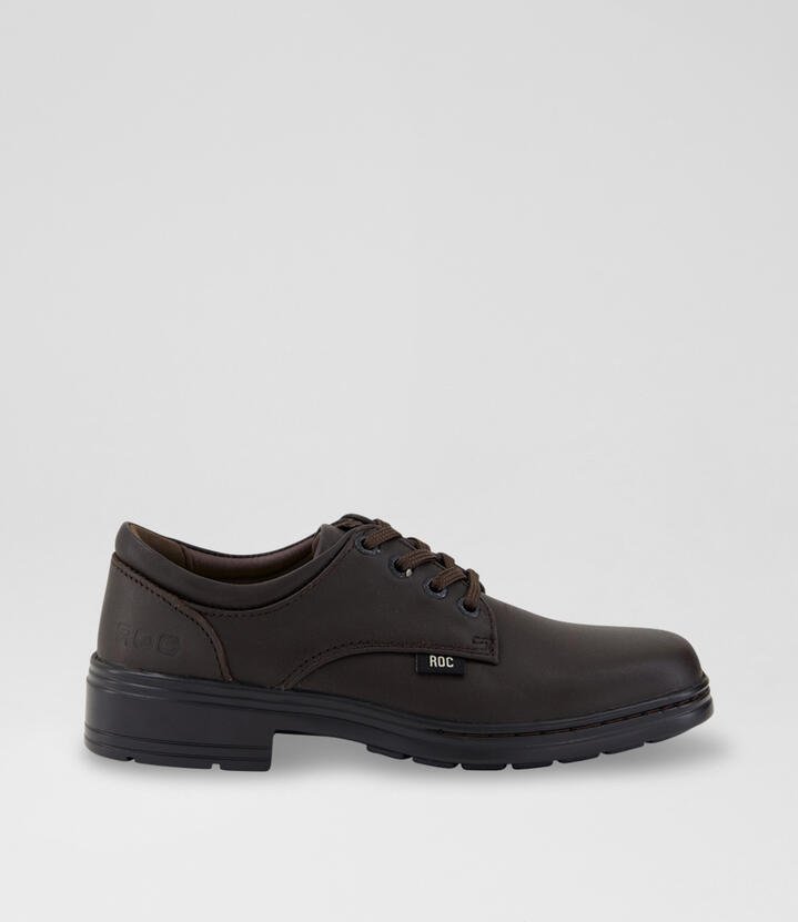LARRIKIN JNR by ROC is a junior lace-up school shoe that features a stitched insole and flex controller polyurethane outsole for flexibility, comfort and durability. It is the perfect shoe for everyday wear thanks to its lightweight sole and breathable leather lining.
