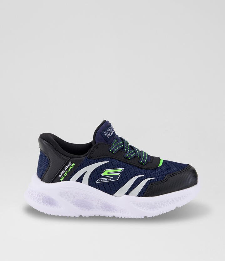Illuminate your steps in sporty style and comfort with Skechers S-Lights: Meteor-Lights. This stretch-laced design has a mesh and synthetic upper with a Skechers Adaptive Closure for a customized fit, plus a fun light-up midsole.