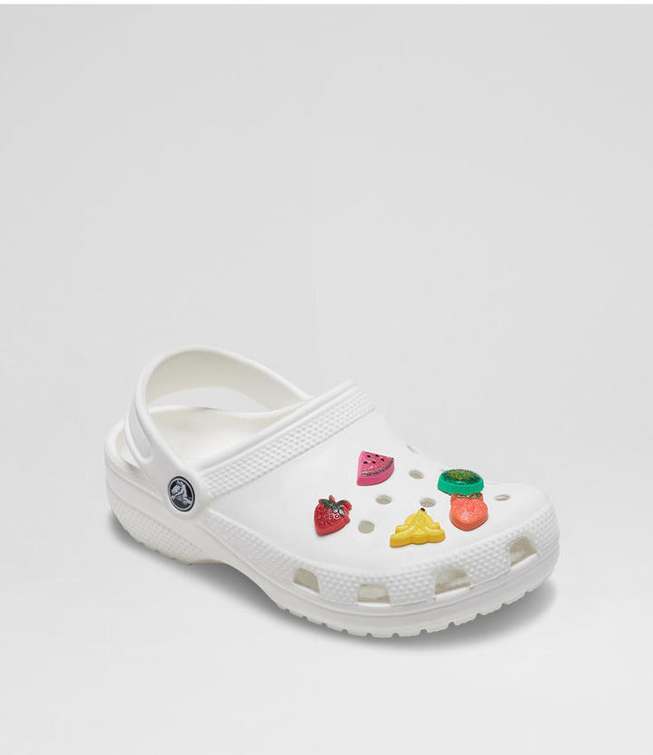 Give your Crocs sandals a unique twist with the Jibbitz SPARKLE FRUIT collection. These fruit-themed charms fit perfectly into the ventilation ports, adding a playful and personalised touch to your favourite footwear.