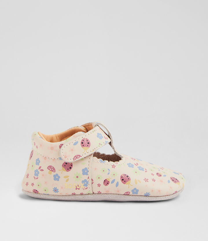 Venture through a fairy garden fluttering with ladybirds, toadstools, petals and leaves with these leather shoes. A classic t-bar design suitable for special occasions or everyday wear, MEADOW is a beautiful gift for your magical little one. Crafted in premium leather to protect your little ones developing feet and soft skin.