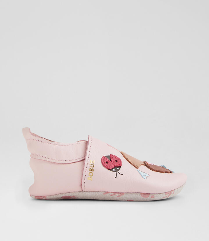 A storybook set upon a pair of tiny leather shoes, the little SONGBIRD tweets sweetly up to your little one, surrounded by an idyllic world of flowers, toadstools and ladybirds. Tactile appliques provide sensory touch and the iconic simple shoe design protects young feet and embraces natural movement.