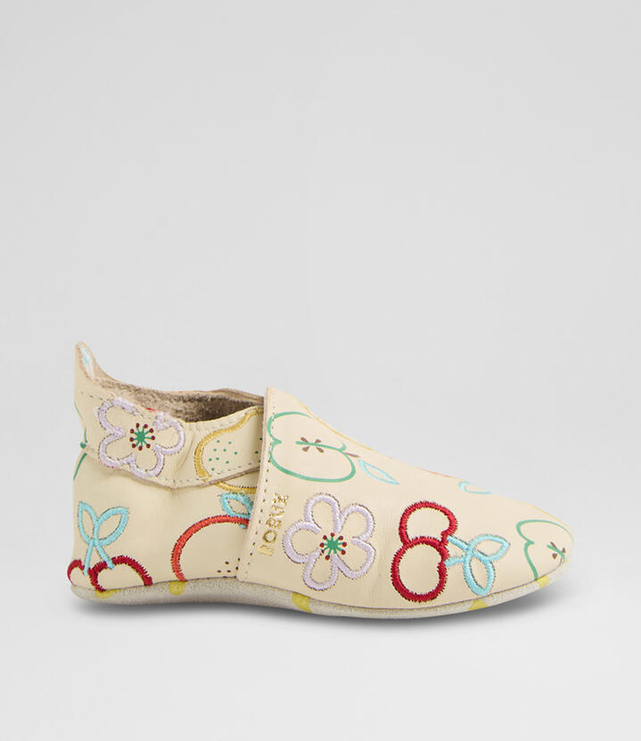 Yum yum, it’s TUTTI FRUTTI! Crafted from skin-friendly and breathable leather, the TUTTI FRUTTI baby shoes are the perfect pair for their very first shoes. A sweet design, elasticated cuff for easy fitting, and the signature suede non-slip sole make this a refreshing take on the signature Soft Sole.