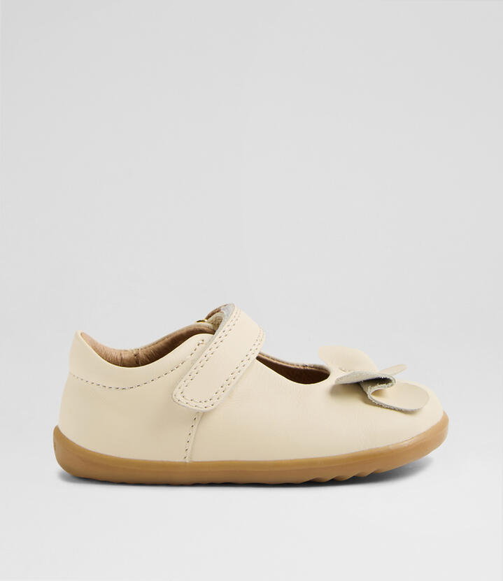 Sweet and stylish, it’s BOWYN! A beautiful Mary Jane crafted from buttery soft leather, BOWYN is topped with a simple bow, and fastened with a hook and loop strap for an easy, quick fit. Breathable linings and a padded collar keeps little feet comfy, while the flexible sole gives them the confidence to seek out adventures big and small. Suitable for first walkers.
