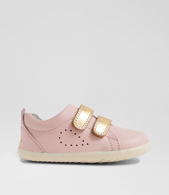 These street-styled trainers are perfect for everyday wear. The premium leather upper is ultra soft and breathable, while a double strap closure provides an easy, secure fit. A cotton knit lining and padded heel make the GRASS COURT as comfortable as it is cool. Suitable for first walkers, this Bobux style fits true to size.