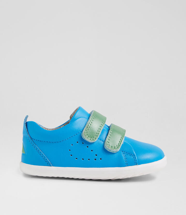These street-styled trainers are perfect for everyday wear. The premium leather upper is ultra soft and breathable, while a double strap closure provides an easy, secure fit. A cotton knit lining and padded heel make the GRASS COURT as comfortable as it is cool. Suitable for first walkers, this Bobux style fits true to size.