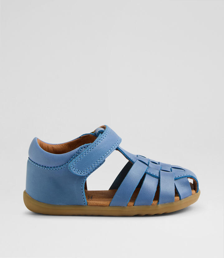 Meet the pint-sized classic sandals for sunny days: HARBOR! A stylish and practical design for warm weather, HARBOR has an open silhouette crafted from leather and a single strap for quick, easy fastening. Fully enclosed at the heel and partially enclosed at the toe for a protective but breathable fit, the pair is finished with a flexible sole that embodies our philosophy on natural movement. This design is suitable for first walkers.