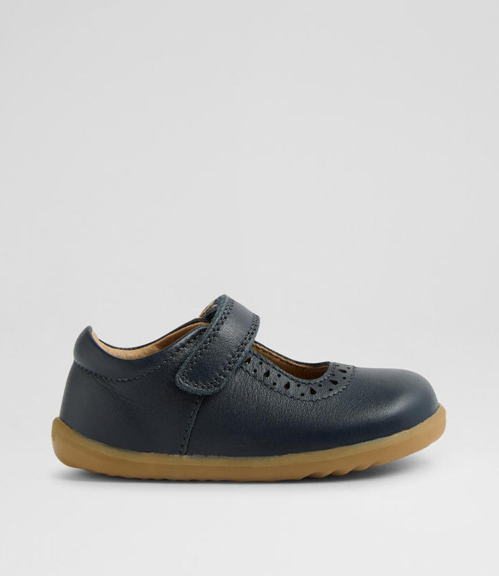 The Lola shoes are a classic style for kids. A single hook-and-loop strap ensures quick and easy fastening, while the flexible sole supports natural movement. Crafted from soft leather, Lola has a timeless appeal enhanced with traditional broguing. This design is suitable for first walkers.