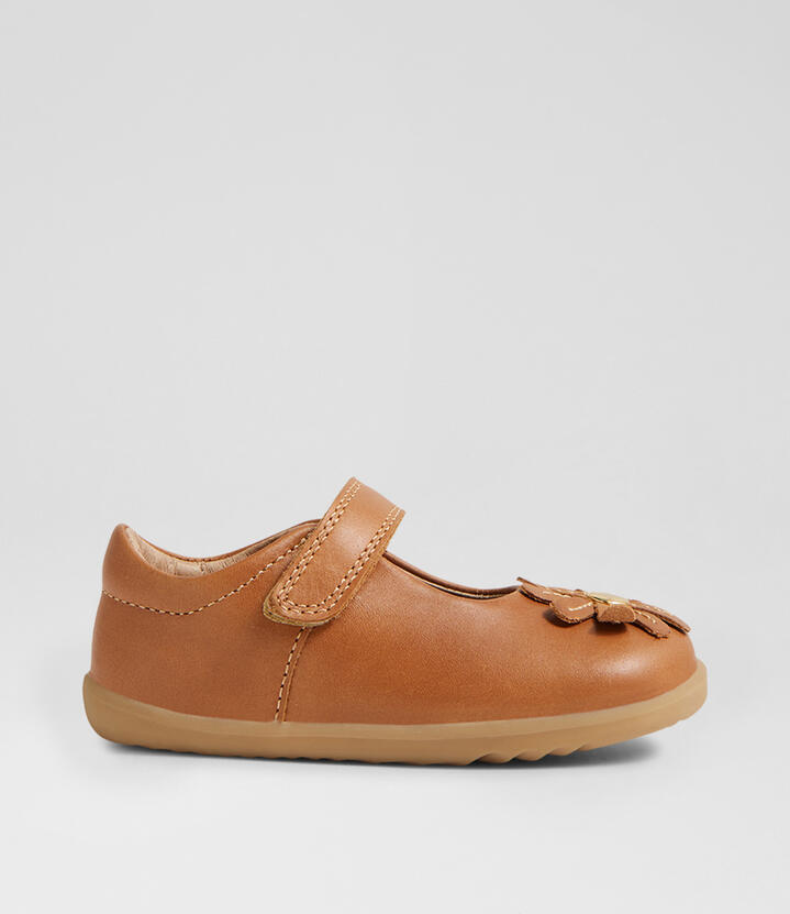 Sweet and simple, the PIXIE Mary Janes add an element of play to any outfit. A single hook-and-loop strap provides a secure and convenient fit and is perfect for small independent fingers to manage. Crafted from soft, fast-drying leather and topped with a daisy embellishment, PIXIE is a charming design for all occasions. This design is suitable for first walkers.