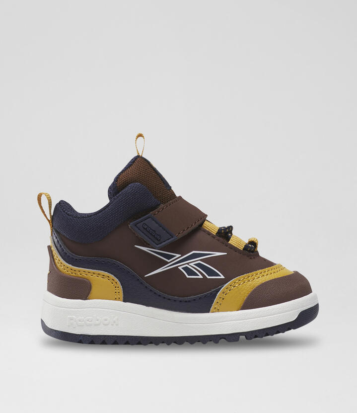 This flagship court model offers early walkers flexibility and durability, while helping your toddler learn their left from right. The wide toe box provide exceptional comfort. The forefoot flex grooves on the outsole supports the gait of an early walker. The Peek & Fit sockliner ensures the perfect fit. The double hook-and-loop closure make for easy-on and easy-off. These toddlers’ Weebok shoes will keep your little one just as agile as you.