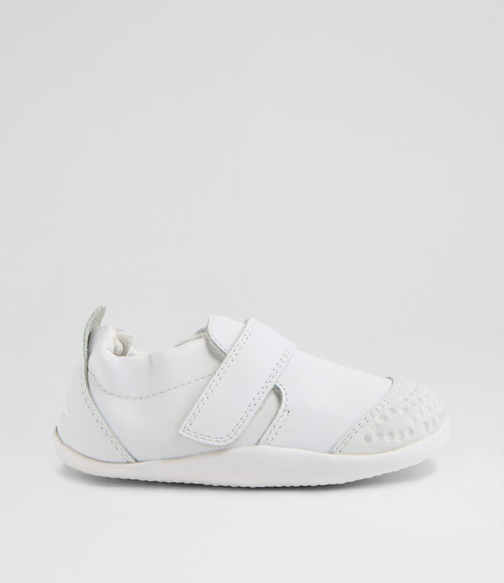 Crafted from premium, soft leather with a single strap fastening, the GO shoes are an easy-on and easy-off shoe designed for little cruisers. With an embossed leather toe cap to prevent scuffing and a super lightweight, flexible sole, there is no better option for crawlers and pulling-themselves-up kids than the iconic Bobux Xplorer Go. This shoe is suitable for crawlers and fits true to size.